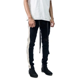 M1 mid distressed - Black dual stripes - Celana Jeans
