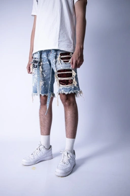 H1 batik short - Cream blue splash 2 - Celana Jeans